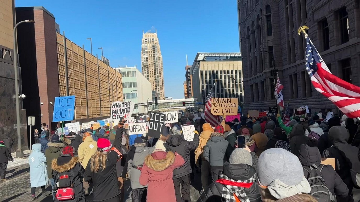 Minnesota Governor Tim Walz said the country is at an “inflection point,” warning that trust between communities and law enforcement is being tested. Protests continued Sunday, with demonstrators demanding an independent investigation.